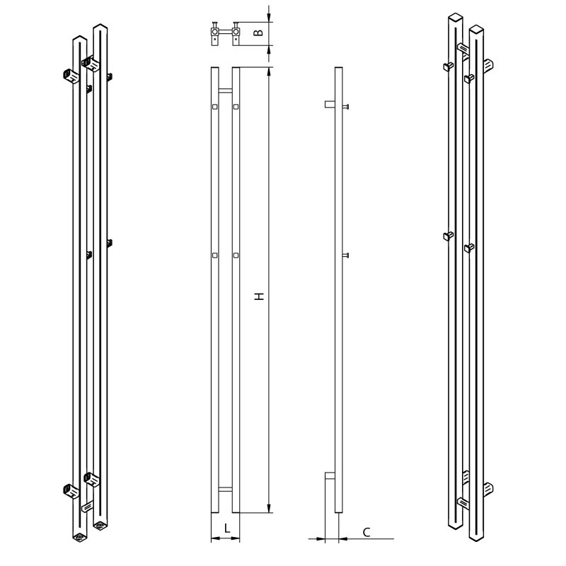 Grzejniki mają dwa króćce przyłączeniowe o średnicy ½”. Każdy grzejnik wyposażony jest w korek, odpowietrznik oraz komplet mocowań. Usytuowanie grzejnika w pomieszczeniu powinno być zgodne z projektem instalacji c.o. Zaleca się mocować grzejnik możliwie nisko z zapewnieniem jego funkcjonalności jako suszarki ale nie mniej niż 100 mm od podłogi.