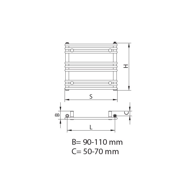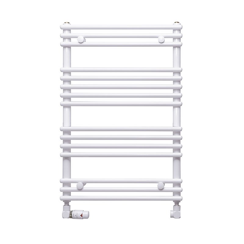 Grzejniki mają cztery króćce przyłączeniowe o średnicy ½”. Każdy grzejnik wyposażony jest w korek, odpowietrznik oraz komplet mocowań. Usytuowanie grzejnika w pomieszczeniu powinno być zgodne z projektem instalacji c.o. Zaleca się mocować grzejnik możliwie nisko z zapewnieniem jego funkcjonalności jako suszarki ale nie mniej niż 100 mm od podłogi.